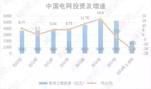 “十二五”以來,我國電網投資總體都保持增長,2017年電網投資開始出現首次下降。國家能源局的最新數據顯示,2018年上半年,我國電網工程投資金額為2036億元,同比大幅下滑15.1%。