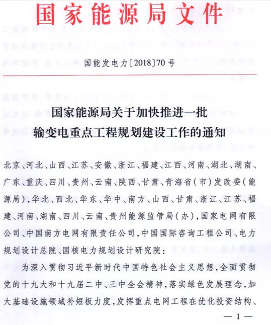 9月7日獲悉,國家能源局印發(fā)《關于加快推進一批輸變電重點工程規(guī)劃建設工作的通知》國能發(fā)電力〔2018〕70號,《通知》指出,為加大基礎設施領域補短板力度,發(fā)揮重點電網工程在優(yōu)化投資結構、清潔能源消納、電力精準扶貧等方面的重要作用,加快推進青海至河南特高壓直流、白鶴灘至江蘇、白鶴灘至浙江特高壓直流等9項重點輸變電工程建設,合計輸電能力5700萬千瓦(工程見附件)。
