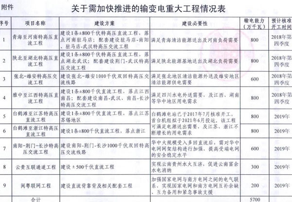 分析9項重點工程發(fā)現,一是核準開工時間集中在2018年第四季度和2019年,較為緊迫。二是主要項目類型都為直流、交流特高壓工程,旨在將西北、西南清潔能源送往江蘇、浙江等電力負荷中心