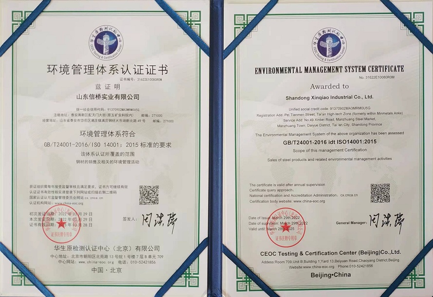環(huán)境管理體系認(rèn)證證書